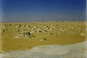Wüste. Peter, Ihab und ich waren seit zwei Tagen auf dem legendären "booze trip" (I'm going nowhere, somebody help me.."). Wir fuhren östlich der Asphaltstrasse von Bahariya nach Farafra. Plötzlich tat sich der Horizont auf. Wir erreichten die Abbruchstelle zur in einer Senke liegenden Weissen Wüste. Sprachlos verweilten wir eine ganze Weile. Atemberaubend, unbeschreiblich. Man muss es selbst gesehen haben. Ich denke dies war einer der Eindrücke, welche immer haften bleiben und auch ein Auslöser meiner Wüstenpassion sind. Auf meinen nächsten 15 Reisen bis 2002 in die Weisse Wüste hatte ich nie mehr so ein erhabenes Gefühl auch wenn jeder Trip wieder neue Eindrücke zu bieten hat. |