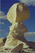 Kairo ein magischer Ort. Er lädt ein zum Träumen, zum Entdecken zum Geniessen. Millionen Jahre haben Wind, Sand und manchmal auch Regen die ungewöhnlichsten Strukturen und Formen in der Wüste geschaffen. Wie riesige Pilzen ragen die schneeweissen Kalksteinfelsen in den Himmel. Je nach Licht und Tageszeit verändern sich Farben und Formen. Zahlreiche versteinerte Muscheln, Planzen und Millionen von Hämatiten in jeder Form bedecken die Oberfläche. Ein wirklich einzigartiger Ort weltweit. Neben prähistorischen Spuren lassen sich auch Zeugen aus römischer Zeit wie Brunnen, Töpferöfen und Gräber finden. Leider wird es nicht mehr lange dauern, bis die Weisse Wüste vollends zum Touristenziel mutiert. Die Veränderungen zwischen 1997 und 2002 lassen dies vermuten. Es ist zu hoffen, dass die Weisse Wüste in nächster Zukunft unter Naturschutz gestellt wird. |